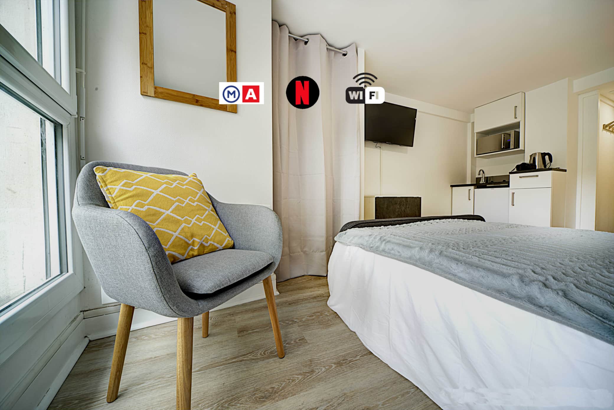 Los apartamentos disponen de una zona de dormitorio, una zona de comedor y una pequeña cocina totalmente equipada (nevera, microondas, hervidor de agua, ....). Los cuartos de baño tienen ducha. Se proporciona ropa de cama y toallas. También hay TV de pantalla plana y conexión Wi-Fi gratuita.